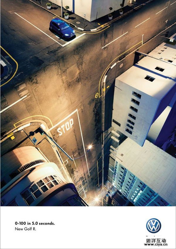 利用视觉欺骗打造的新高尔夫汽车广告。在平面中为观众呈现出一个三维的盗梦空间一般的世界。
