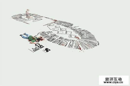 美国电视剧《犯罪现场调查》简称CSI,这张平面广告中使用了犯案现场并将破案线索引申为迷宫。