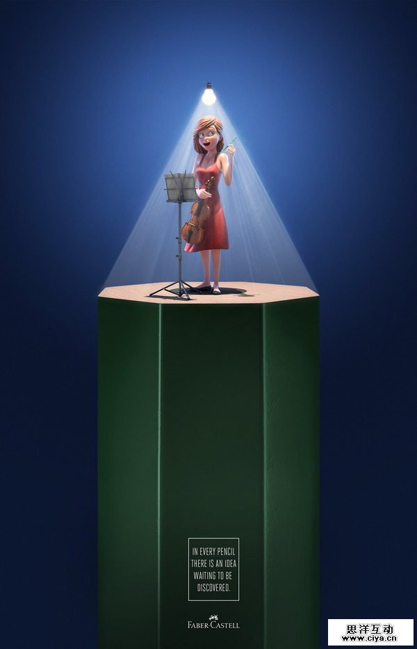 可以为人们带来灵感的好创意谁也不会忘记。辉柏嘉的一则广告用铅笔尖变成了照亮创造者的光源,如果你是设计师、作家、艺术家的话,绝对不会拒绝这样一只神奇的铅笔的吧。