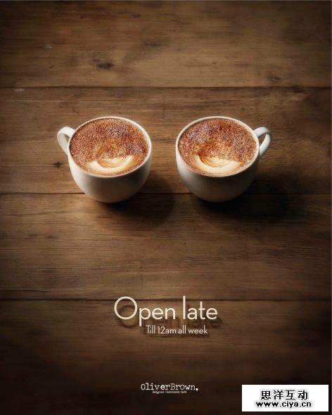 奥利弗布朗连锁巧克力店的一则广告,有没有从两杯咖啡的神情中看到睡意呢?让画面能够带动情绪这可不容易哦。