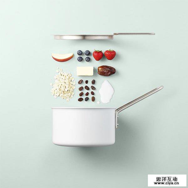 摄影师 Mikkel JulHvilshøj 为丹麦设计品牌 Eva Solo 精心布置了这个食物和烹饪产品的场景。虽然其中没有一个文字,但食材和厨具本身的魅力足以。