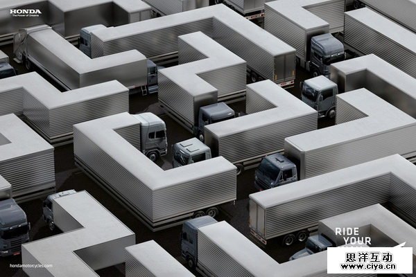 本田公司捕捉到了这个创意点,然后将货车变形成迷宫的样子。消费者第一眼肯定是 get 不到要点的,因为这个梗很深好嘛,所以需要经过一点深度思考然后产生认同。而且,迷宫的图形本来就很有代入感。