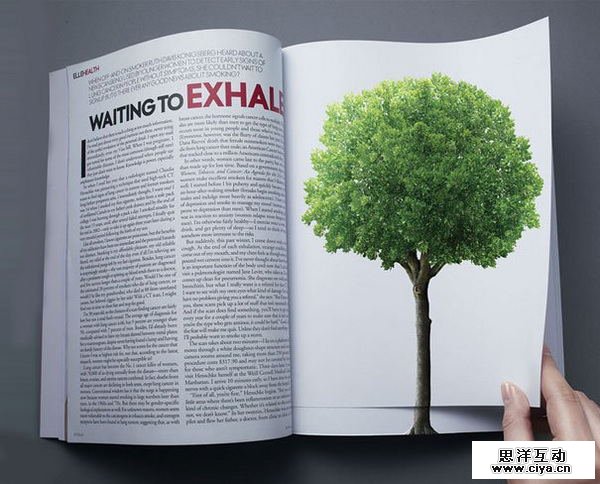 Adidas:Forever Sport 的双页面广告很好的利用了跨页可折叠,可翻动的特点,使其成为设计的一部分。翻开或闭合页面的时候,模特便开始做出仰卧起坐,举重和舒展的动作。