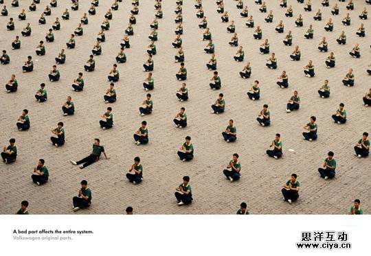 我们眼睛总是能够迅速找到同一画面中格格不入的东西,当秩序被打破就会吸引所有观众注意那里。