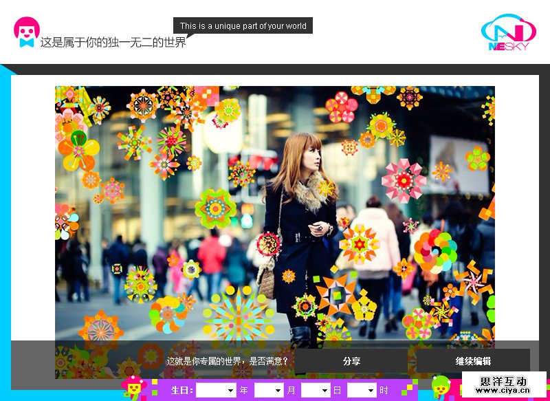 在成为合伙人之后,我主动提出要把自己的原创品牌“Nesky”加入到公司的运营中,这个想法得以实现。经过多方的努力,我的“Nesky”品牌成功与多个品牌达成合作,例如跟一商场合作创作了一个视觉展现的成果;与一礼品公司合作开发了Nesky系列礼品;开发了一个程序让用户可以DIY自己心中的“Nesky”;还有开发T恤产品等等。所以,其实合伙人公司也成就了我的品牌。