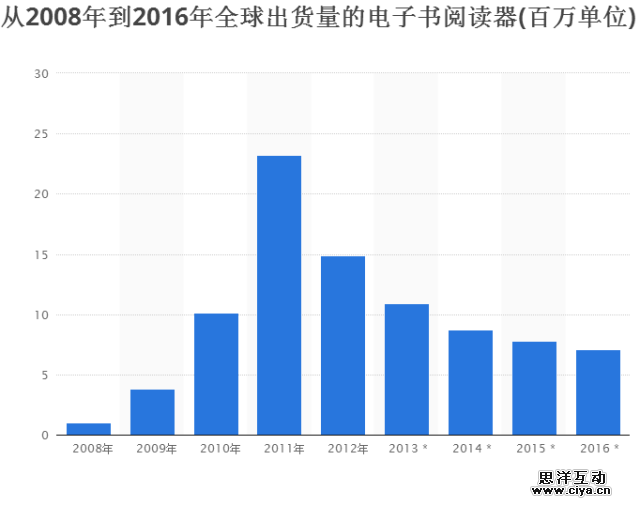 (近几年全球电子阅读器的出货量数据,数据来源于Statista)