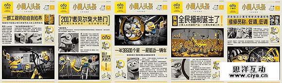 摩拜和ofo正处于成熟期,纷纷加强了品牌运营,此处仅以ofo为例,ofo请来了当红小鲜肉鹿晗作为自己的形象大使,并进行了社会广告投放,在公交,地铁等地都能看到鹿晗与小黄车的身影。在神偷奶爸3上线前,ofo就与神偷奶爸合作,推出了小黄人合作款小黄车,并发布了5张头条报,ofo通过与小黄人合作,再次将自己的品牌打响。