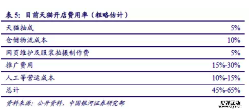 同时,线上店铺的运营成本并不低。电商平台携流量以令线上店铺往往会削弱经营者的利润,如天猫对网红店铺的抽成占比能达到5%,再加上推广费、人工运营成本,总计45%~65%。如果说大大小小的淘宝店是电商玩家,那么阿里就是庄家,制定规则的那个人永远有更多的话语权。