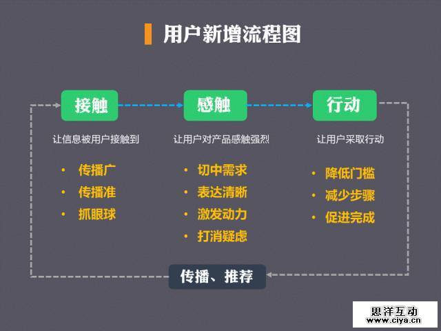 这篇文章把新增用户的三步拆解为「接触、感触、行动」三步,并把优化这三步的方法做了一个总结,让你对获取新用户这件事有一个整体的思维框架。