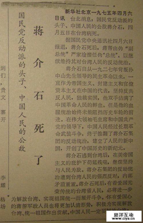 传统媒体:《蒋介石死了》