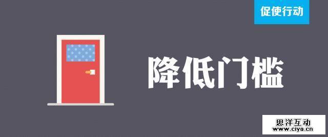 降低门槛:用户行动的门槛越高,就越难形成转化,适当降低门槛,可以极大地提高转化率。