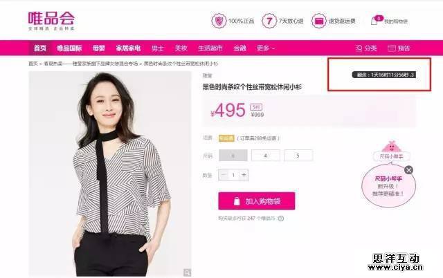 在唯品会网站里,你会发现几乎每个商品都是在限时特价,商品详情的右侧还有一个倒计时,不断地提醒你及时购买和下单。