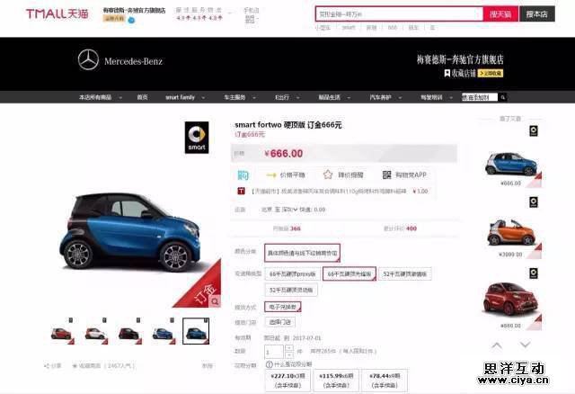 在奔驰的天猫官方旗舰店中,已经卖出了近万台Smart,但在网店上支付15-20万还是一个心理门槛非常高的事情。