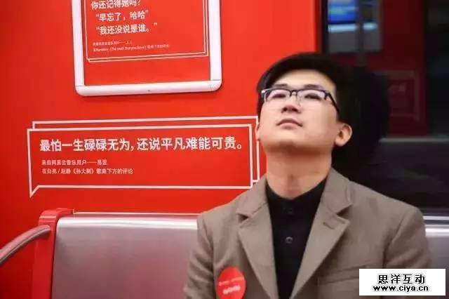 1、接触:产品选择在地铁上的打广告,让潜在用户(小明)上班路上接触到了产品(网易云音乐)广告信息。