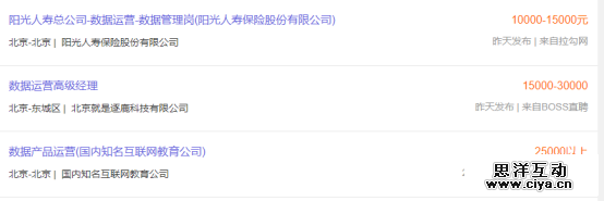 从智联招聘上来看,3年以上的相关工作经验的数据运营,工资在15k-25k不等,虽然没有电视剧里演的工资那么高,但是在普通的互联网公司中,数据运营的前途还是很好的,如果再发展几年,3年年薪30万,10年年薪就是100万,由此可看,数据运营是一个非常有前途的岗位。