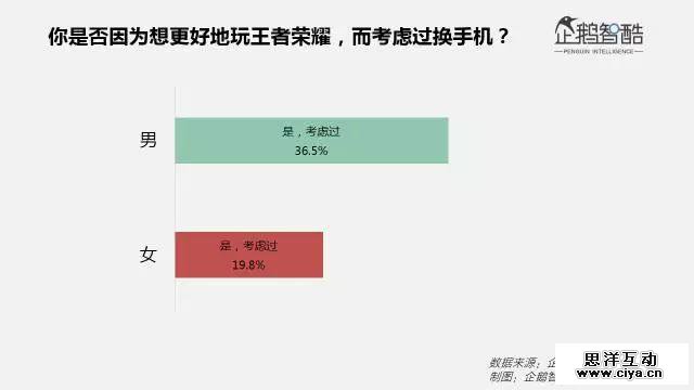 10.超过三分之一的男性玩家表示有过因为游戏更换手机的冲动;女性玩家中,也有19.8%用户想过更换手机。