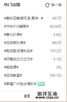 新浪微博右侧热点话题栏目