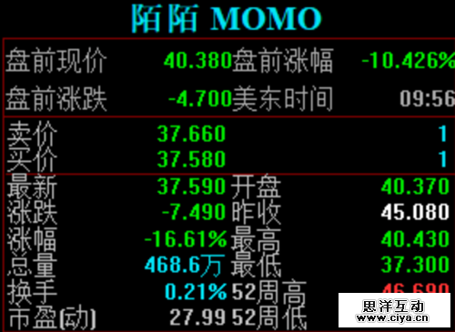 尽管一个季度营收增长了215%,净利润增长了295%,但在财报发布当天,陌陌的股价却暴跌了20%。而早陌陌一天发布财报的58同城,虽然净利润(500%)比陌陌快,但营收增长(33.3%)要远低于陌陌,而财报发布当天其股价却暴涨20%。