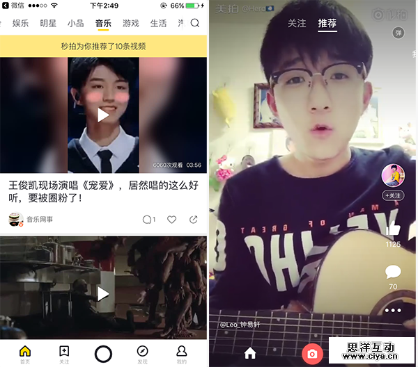 打开两者的页面,可以明显感受到,秒拍APP对视频做了细致的分类。而随手拍APP未对视频做分类,用户无法在最短时间内找到自己想要的视频。