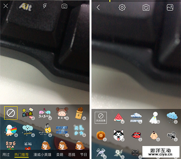 点击录制视频,秒拍APP为用户提供了大量的贴纸,满足用户多种场景下的需求,而随手拍APP的贴纸数量较少。