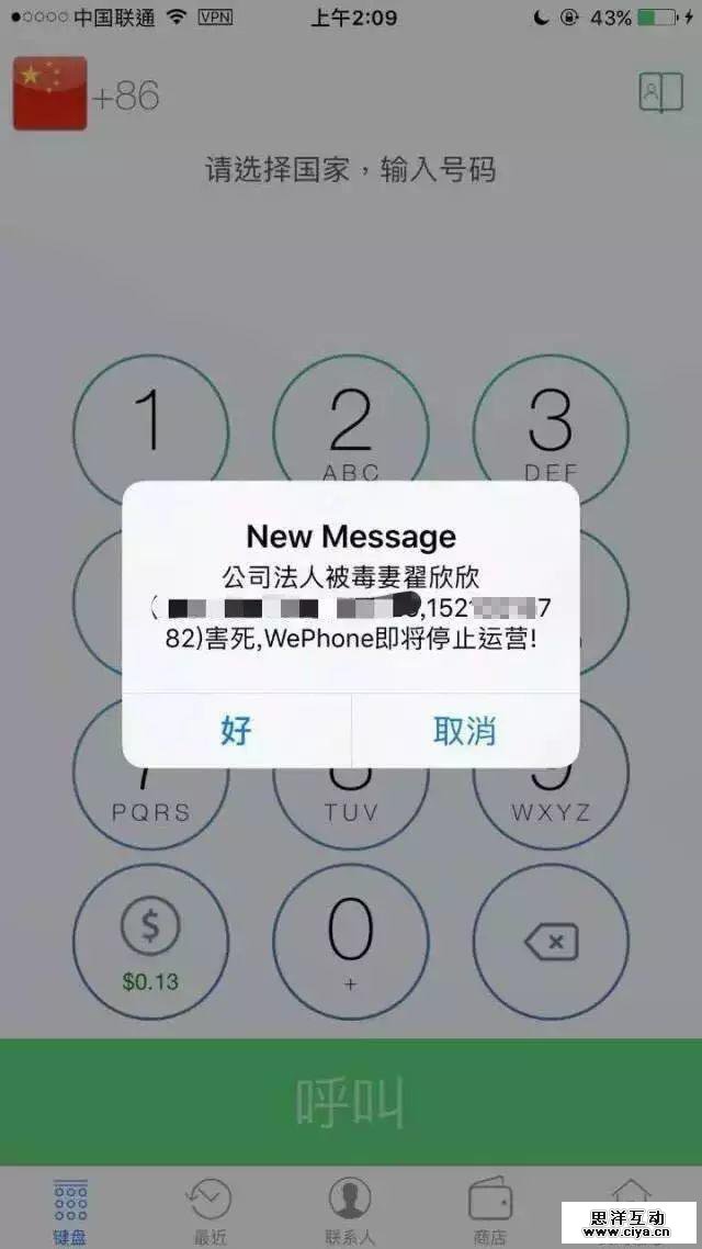 一些使用WePhone的用户已经收到了App弹出的提醒,称公司法人已被“害死”,WePhone即将停止运营。