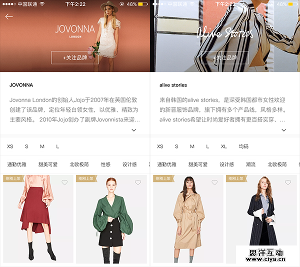 除了丰富的品牌,衣二三还在各个品牌页面上为用户介绍品牌故事,通过这么一种讲故事的方式,拉进品牌与用户之间的距离。