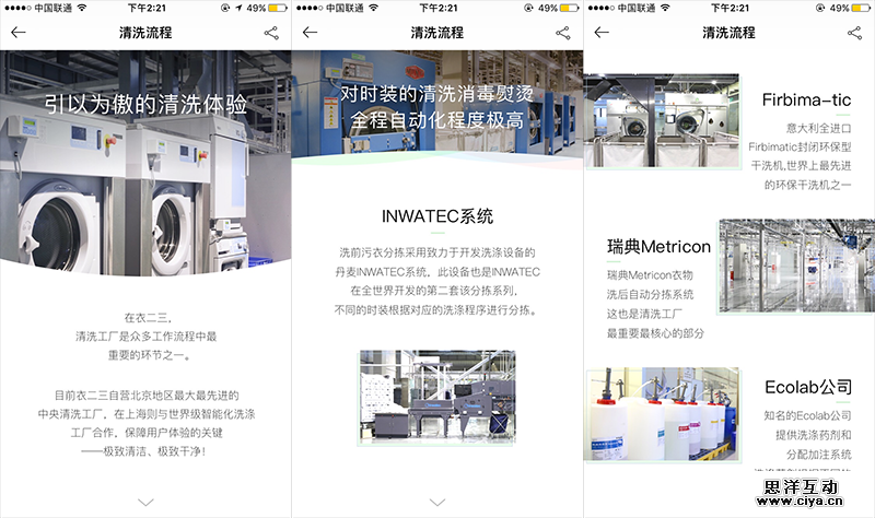 通过为用户展示洗衣现场和流程,告知用户,衣二三清洗过的衣服比用户在自己家里清洗的还要干净999倍。
