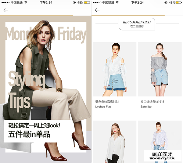 科普上班的基础穿搭技巧,然后在专题内容的底部为用户推荐衣二三APP提供的相似衣服,刺激用户在APP内下单。