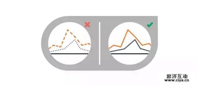 虚线会让人分心,而是用实线搭配合适的颜色更容易彼此区分。