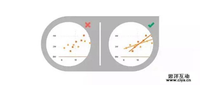 要通过辅助的图形元素来使数据更易于理解,比如在散点图中增加趋势线。