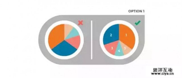 饼图是一种非常简单的可视化工具,但他们却常常过于复杂。份额应该直观排序,而且不要超过5个细分。有两种排序方法都可以让你的读者迅速抓取最多的重要信息。