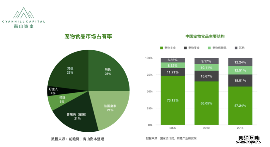 一方面,在目前宠物食品行业中,形态愈加细分,宠物主食的占比在逐年下降,零食和保健品占上升,另一方面,在目前的多个细分行业中, 有多个行业是属于典型的比较粗放式的市场状态,有品类但无品牌。随着注重品质的主⼒消费群体的崛起(这些人往往也是朋友圈中的意⻅领袖),市场中会出现更多新品牌的机会。