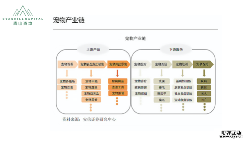 目前宠物产品层面已经形成一定的成熟度,但在宠物服务领域,发展还不充分。不少国内宠物企业已经开始向产业链的上下游进行延伸,尝试提供一体化的宠物服务。