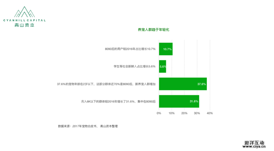 第一,80、90后的崛起带动宠物行业的消费习惯变化。养宠人群在过去3年内大幅增加,其中大部分是年轻人。他们对品质、审美时尚、宠物健康以及用户体验(让人与宠物的体验更好)提出了更高的要求。