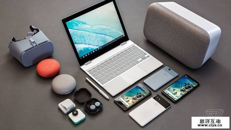 Google Pixel 2、Pixelbook 等诸多硬件产品。图片来自 The Verge。