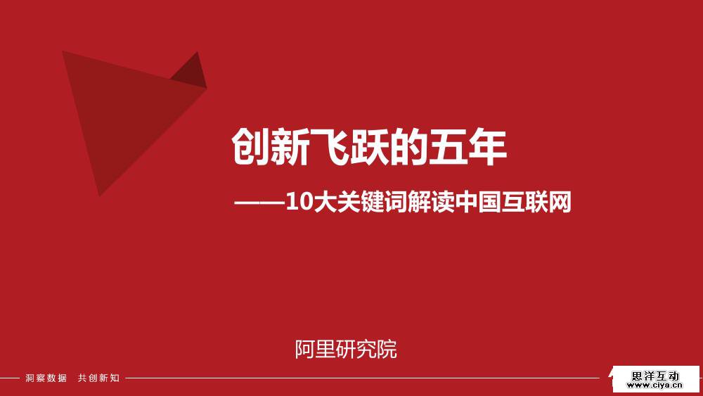 我国互联网产业在5年里究竟发生了哪些变化?阿里研究院发布报告《创新飞跃的五年:10大关键词解读中国互联网》。报告基于丰富的数据、以及鲜活的案例、鲜明的观点从10个方面对中国互联网5年的发展做了全面分析和解读。