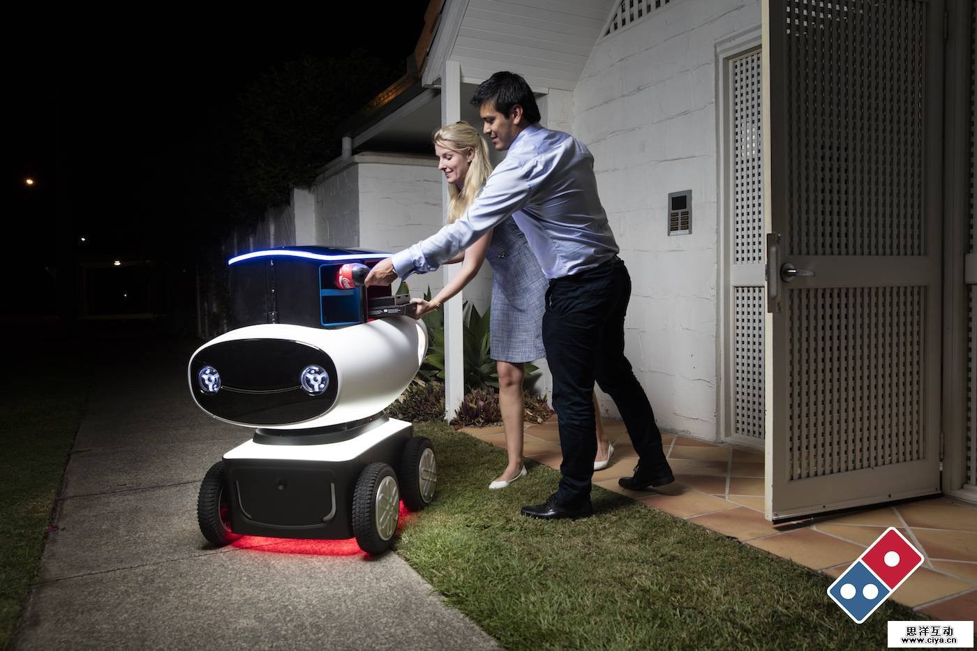看到必胜客的活跃表现,友商达美乐也坐不住了。他们也开始琢磨起科技元素来。而琢磨的结果则是“达美乐送餐机器人”: