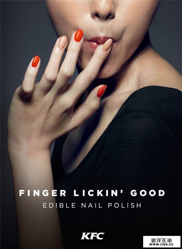 去年,肯德基推出了一种名叫“点指回味”的可食用指甲油。这款指甲油号称使用天然原料制造,还有“香辣”、“原味”等口味可供选择,据说如果把指甲油倒在炸鸡上,其口感根本就与调味酱无异。
