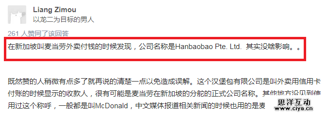比如说新加坡的麦当劳,正名叫做Hanbaobao Pte. Ltd。