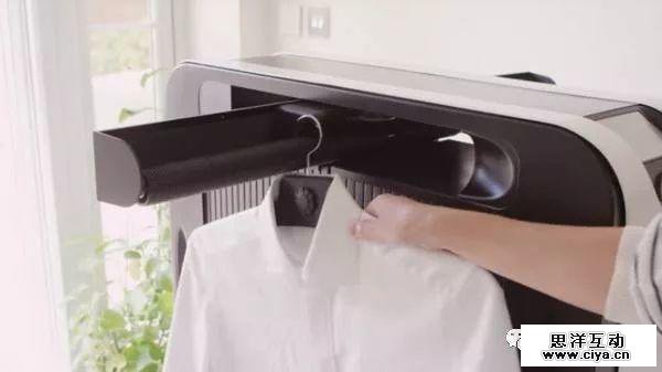EFFIE外观看上去像一个电暖气片,扁平的设计让它尽可能的不占空间。机器没有复杂的安装过程,只要通上电就可以工作。当你开始使用时,只需要将洗衣机里的衣服取出来挂在熨烫机的挂杆上,3分钟后你就可以拿到熨烫平整的衣物。机器内部的伸缩式轨道支架最多可以同时容纳12件衣服。这就意味着你再也不需要浪费睡觉的时间来一件件的熨衣服了~