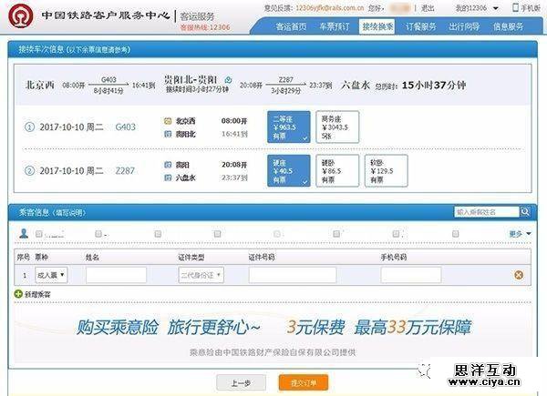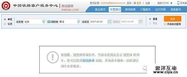 当遇到出发地和目的地之间的列车无票或没有直接到达的列车时,旅客可选择“接续换乘”功能,售票系统将向旅客展示途中换乘一次的部分列车余票情况,如果旅客选择购买,可以一次完成两段行程车票的支付。