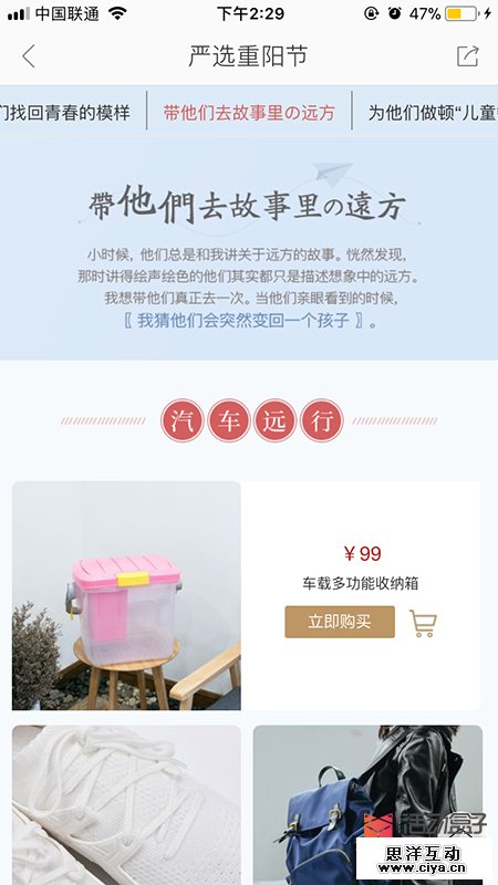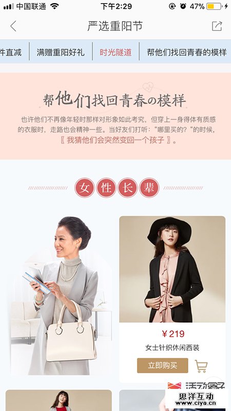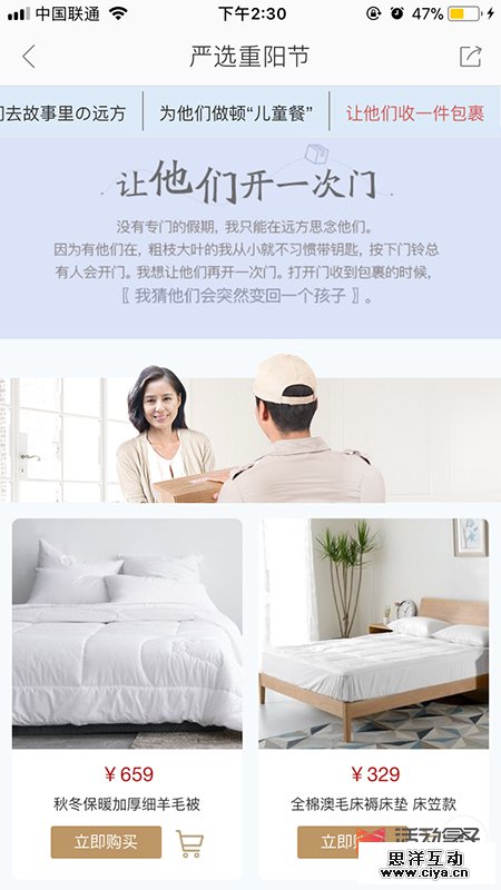 总结:网易严选APP讲了一个关于父母与陪伴的故事,唤起了用户的童年回忆,给了用户一个重阳节参加活动的理由,再用打折促销的方式,刺激用户购买商品。你呢,想好用什么方法刺激用户参加到你的活动中来了吗。
