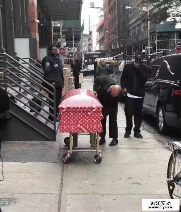 最近,国外网友晒出了一张,Supreme x LV 的棺材正被运上货车的照片。