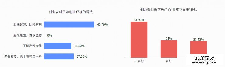 11、多数创业者认可当下的环境,认为“越来越有利”。没有创业者认为越来越差。对于热门的“共享充电宝”超过半数创业者并不看好。