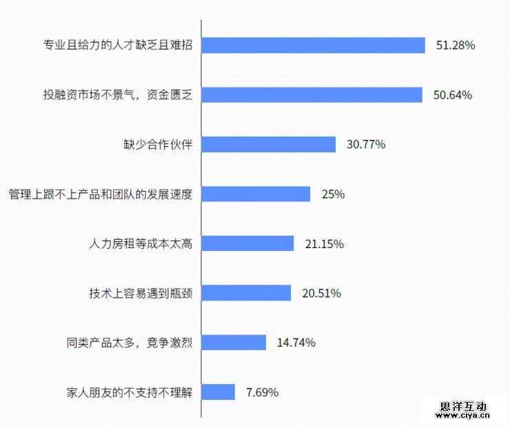 13、创业最大的困难来源于“人和钱”,专业且给力的人才缺乏且难招,投融资市场不景气,资金匮乏。