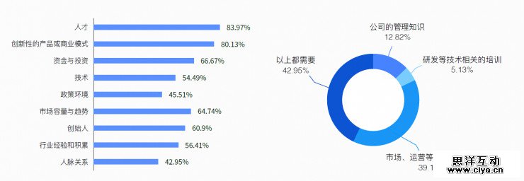 12、创业成功的关键因素,人才、创新性的产品和商业模式占前两位。而创业团队则最需要“市场、运营等方面的培训”。