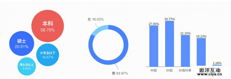 15、创业者画像:男性占大多数,年龄以80后90后为主,学历本科居多。