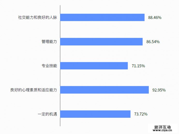 10、创业者认为多种能力都很重要,良好的心理素质和适应能力占据首位。专业技能只在最后一名。