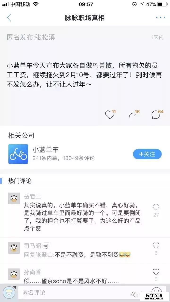 此外,李刚的另一家公司,与小蓝单车一起办公的野兽骑行,除了高管外,其余员工全部遣散(劝退)。