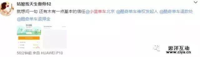 但到了11月中旬,小蓝单车承诺的退款期限已过,却有不少网友反映并未收到退款。现在投诉还在上升中。